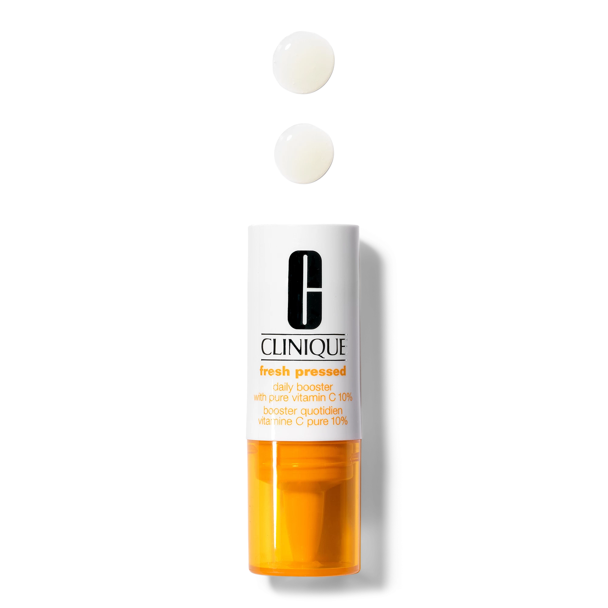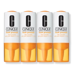 - Unique de-aging Booster harnesses the full power of pure, fresh Vitamin C at Clinique’s highest concentration to brighten, even, and retexturize skin.